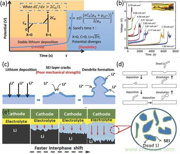 d)鋰枝晶引起的安全問題;