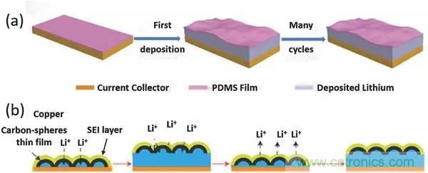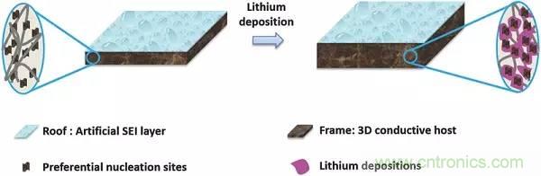 圖14.采用3D導(dǎo)電主體作為框架,人造SEI層作為屋頂,為極度活潑的鋰建一個(gè)房屋