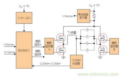 Qi發(fā)射器控制器擁有輸入功率限制選項(xiàng),至發(fā)射器的輸入電流可被限制在500mA,從而允許通過USB端口或小型電源適配器供電運(yùn)行。bq500211發(fā)射器的穩(wěn)壓電路有3.3V的LDO穩(wěn)壓器構(gòu)成輸出芯片供電,LDO的最大優(yōu)勢就是PNP管只會(huì)帶來很小的導(dǎo)通壓降,滿載的跌落電壓的典型值小于500mV,輕載時(shí)的壓降僅有10~20mV。LDO的壓差為:Vdrop = Vsat (LDO 穩(wěn)壓器)。