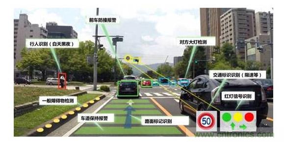 ADAS(高級輔助駕駛系統),是指利用安裝于車上各式各樣的傳感器,在第一時間收集車內的環境數據,進行靜、動態物體的辨識、偵測與追蹤等技術上的處理,從而能夠讓駕駛者在最快的時間察覺可能發生的危險。通常包括導航與實時交通系統TMC,電子警察系統ISA 、自適應巡航ACC 、車道偏移報警系統LDWS、車道保持系統,碰撞避免或預碰撞系統、夜視系統、自適應燈光控制、行人保護系統、自動泊車系統、交通標志識別、盲點探測,駕駛員疲勞探測、下坡控制系統和電動汽車報警系統等。