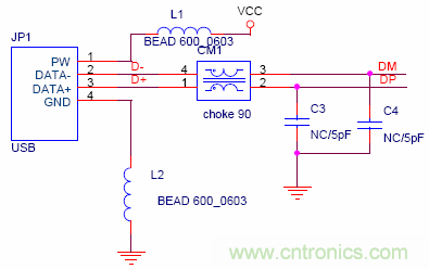 USB 高速運行會在DM/DP信號線上產生很強的共模干擾