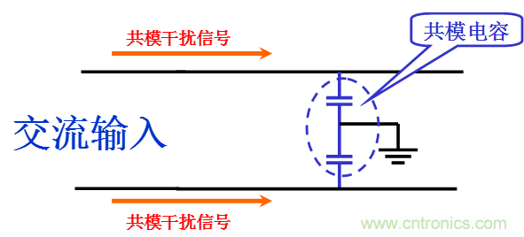 如果共模干擾源是在電源回路,可使用共模電容來抑制干擾信號