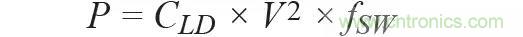 在 CMOS 技術中,提高速度(帶寬)的最普遍方法是讓晶體管幾何尺寸變小。使用更精細的 CMOS 晶體管可降低寄生效應,從而有助于提高晶體管的速度。晶體管速度越快,則帶寬越寬。數字電路的功耗與開關速度有直接關系,與電源電壓則是平方關系,如下式所示: