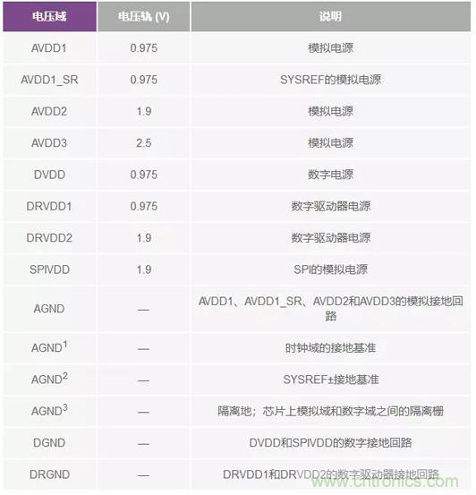 表2:AD9208電源域和接地域