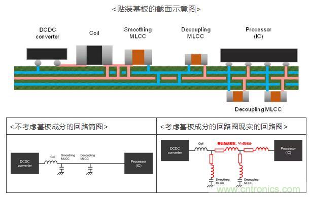 但是,隨著安裝小型化,對基板尺寸和貼裝區域的限制越發嚴格,已很難為了得到期望的阻抗特性而大量貼裝必要的MLCC。