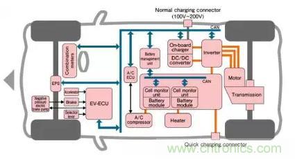 圖1展示了這些系統以及需要在EV中控制或通信的許多其他子系統。