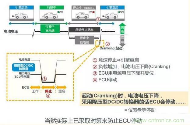 現在市面采用的都是降壓型DC/DC轉換器,在車子啟動時,電池電壓的下降會使得車載電子控制單元(Electronic Control Unit, 以下簡稱“ECU”)停動。要想使ECU穩定工作,就需要升降壓轉換器。