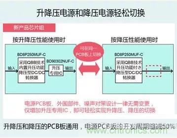 因此,從降壓電源變身為升降壓電源僅需增加1枚升壓專用IC即可輕松實現,與升降壓電源和降壓電源分別設計的情況相比,開發周期可縮減50%。