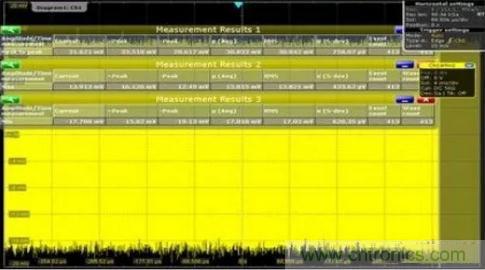 根據傳統電源調試經驗,首先在該網絡上增加了一些去耦電容,增加電源網絡的阻抗余量, 保證在中頻段的電源網絡阻抗都能滿足該應用場景的需求。結果紋波僅降低幾mV,改善微乎其微。產生這個結果有幾個可能:1、噪聲處在低頻,并不在這些去耦 電容起作用的范圍內;2、增加電容影響了電源調節器VRM的環路特征,電容帶來的阻抗降低與VRM的惡化抵消了。帶著這個疑問,我們考慮使用示波器的頻域 分析功能來查看電源噪聲的頻譜特性,定位問題根源。