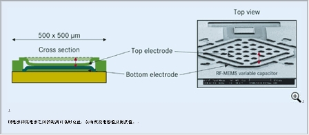 圖2:射頻-微機電系統的工作模式(圖中文字:頂電極和底電極之間的距離可臨時設置,從而改變電容值及阻抗值)
