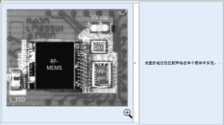 圖5:射頻-微機電系統試樣(圖中文字:完整的適應性匹配網絡在單個模塊中實現)