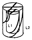 盡管采用較粗的螺旋臂可使四臂螺旋天線輸入端的電抗隨頻率的變化變得較慢,因而能在一定范圍內改善頻帶特性,但這種改進受到很大的限制,且付出的代價是增加了天線的重量和加工難度。為了能真正實現寬帶工作,我們以這種天線為基礎設計出的八臂螺旋天線如圖1所示。這種新型天線由兩付形狀相同,共軸放置,但臂長不同的四臂螺旋天線組成。我們只對其中的一付螺旋天線饋電,另一付天線上的電流則通過電磁耦合得到。