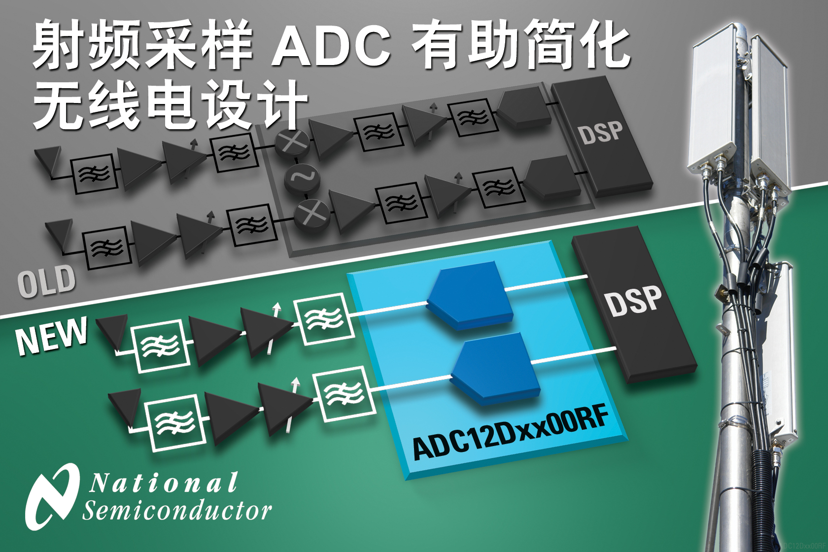美國國家半導體公司宣布推出全新系列模數轉換器(ADC),新產品實現了業界首次對超過2.7 GHz射頻信號的直接采樣,同時具有-71dBc的三階互調失真(IMD3)性能和高達每秒3.6千兆次(GSPS)的采樣速率。