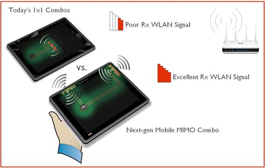 第一代平板電腦的制造商不得不借用智能手機的Wi-Fi解決方案。該解決方案是一個小型集成片上系統(tǒng)。該系統(tǒng)集成了包括Wi-Fi、藍牙和調頻在內的單信道天線組合無線電架構。雖然這些解決方案滿足了平板電腦在功率和工業(yè)設計局限方面的要求,但其不能將PC機的性能融入平板電腦。