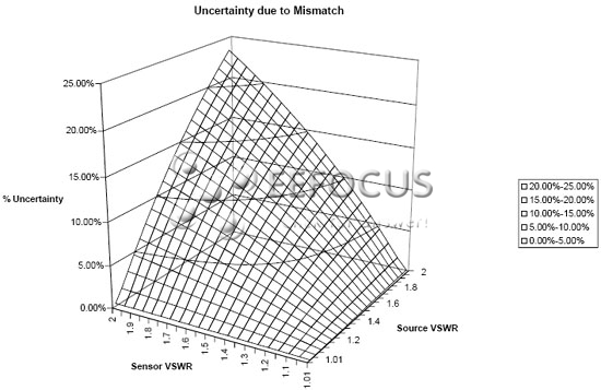 這是傳感器和校正因子的校正系統之間不匹配的函數,它受到被測傳感器的影響。所以,對于38GHz的快速熱傳感器的例子,其具有的校正因子不確定性為3.62%,而2.2 GHz的通用傳感器具有0.6%的校正因子不確定性。