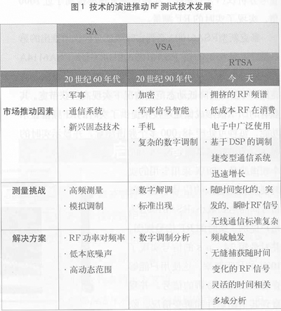 19世紀60年代,James Maxwell 通過計算推斷出存在著能夠通過真空傳輸能量的電磁波。此后工程師和科學家們一直在尋求創(chuàng)新方法利用無線電技術。接下來,隨著軍事和通信領域技術的深入發(fā)展,20世紀無線電技術一直在不斷創(chuàng)新,技術的演進也推動著RF測試技術向前發(fā)展(見圖1)。從軍用的跳頻電臺、雷達到RFID,第三代移動通信、藍牙、WLAN,各種微功率發(fā)射裝置等,瞬態(tài)信號如今無處不在。瞬態(tài)信號存在的普遍性使得技術人員需要有效的儀器對其進行捕獲、存儲并回放分析。另外,監(jiān)測間歇性干擾或頻譜使用情況等也需要一種有效的手段來實現(xiàn)“寬帶實時監(jiān)測”。