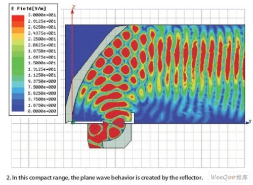 圖3:在緊縮測試場中由靜區上的反射面產生的平面波。