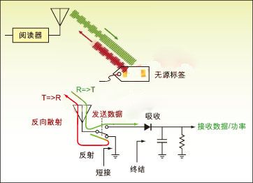 圖1:無源標簽對射頻 RF能量進行整流并調制信號,然后反向散射反射給閱讀器。