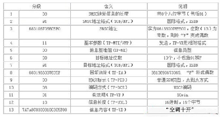 仍以上述短信為例。空調(diào)收到網(wǎng)關(guān)的開(kāi)機(jī)命令后執(zhí)行開(kāi)機(jī)操作,并將執(zhí)行結(jié)果返回給網(wǎng)關(guān)。如網(wǎng)關(guān)判斷該返回是回應(yīng)短信的,則網(wǎng)關(guān)以中文短信形式將結(jié)果發(fā)到PC或用戶(hù)手機(jī)上(此例中號(hào)碼為13690673365),從而方便而又廉價(jià)地實(shí)現(xiàn)了對(duì)空調(diào)的雙向短信控制。發(fā)觸的PDU串為:08 91683108705605F0 1100 0091 6831966037635F 00 0801 107A7A8C03003100305F00
