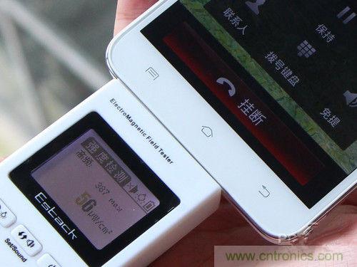 我們也進行了相關的簡單測試,采用Estack ES-305A型電子輻射檢測儀,第一階段將手機撥號,使其為通話狀態,但尚未接通,此刻來使用輻射測試儀測試手機周圍輻射,找到平均輻射值最大的地方。第二階段用手機撥號,接通五秒后,利用輻射測試儀在手機四周檢測,同樣是找到平均輻射值最大的地方。