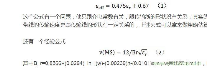 下面列舉幾個微帶線傳輸速度的經驗公式