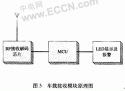 該系統的基本工作原理如下,把輪胎模塊裝置在輪胎內,壓力和溫度傳感器檢測輪胎內部當前的應力和溫度信息,獲得的模擬信號經過A/D變換器轉換成數字信號,然后通過射頻發射器發送出去。車載接收模塊裝置在駕駛室內,射頻接收器接收來自輪胎模塊的應力和溫度信息,當輪胎壓力過高或者過低時,通過顯示和報警裝置發出報警信息。
