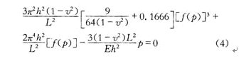 其中坐標(biāo)系是平面直角坐標(biāo)系,其原點(diǎn)是正方形薄膜中心,坐標(biāo)軸平行于薄膜的邊。其中h和L分別是薄膜的厚度和邊長。f(p)是一個(gè)關(guān)于薄膜絕對(duì)壓強(qiáng)的函數(shù)。f(p)由方程(4)決定,即