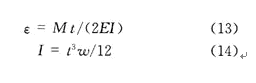 懸梁的應(yīng)變通過式(13)來計(jì)算,E是楊氏模量,I是慣性矩。慣性矩計(jì)算公式是式(14),t是懸梁的厚度,ω是懸梁的寬度,則