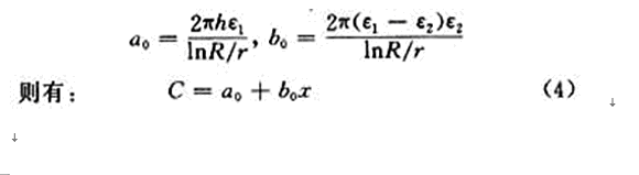 這說明,電容量C的大小與電容器浸入液體的深度x成正比。