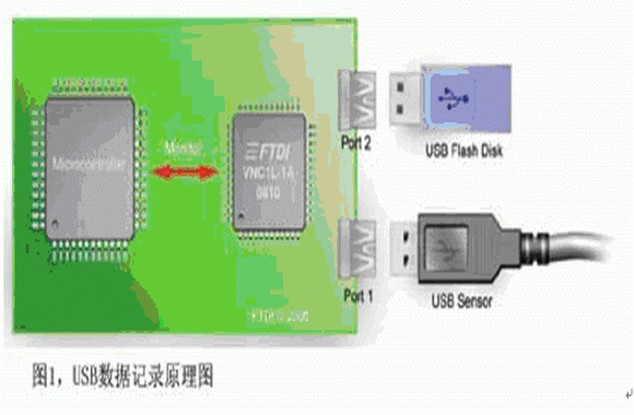目前市場上有很多種數(shù)據(jù)采集設備可用于在PC上記錄數(shù)據(jù),如National Instrument的LabVIEW,不過這類設備的傳感器件開始越來越多地采用USB接口而不是RS232或其他傳統(tǒng)接口。過去在嵌入式系統(tǒng)中應用USB設備需要性能相對較強的硬件,要帶有USB Host控制器接口、RTOS以及USB軟件驅動,結果因USB Host功能實施成本的原因設計工程師一直都不太愿意在小型8位或16位MCU系統(tǒng)上增加USB設備。但隨著最新一代智能USB Host控制器IC的推出,與MCU配合使用不僅可為PC應用使用USB數(shù)據(jù)采集設備,而且還可將數(shù)據(jù)存儲在低成本高容量的閃存盤上。