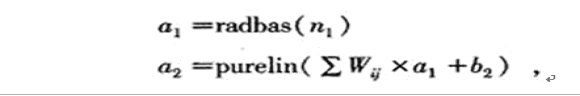 鑒于BP神經(jīng)網(wǎng)絡(luò)訓(xùn)練過程需要對所有權(quán)值和閥值進行修正,是一種全局逼近神經(jīng)網(wǎng)絡(luò),但訓(xùn)練速度較慢,不適用實時性較強場合,故采取了局部逼近網(wǎng)絡(luò)——徑向基網(wǎng)絡(luò)。算法訓(xùn)練關(guān)系式如下: