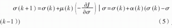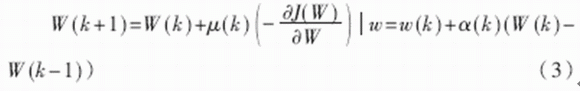 其中,μ(k)為學習率,α(k)為動量因子,也稱為遺忘因子,又稱動量項或阻尼項。將其稱為遺忘因子可從對于新舊信息的學習與遺忘的角度來理解;稱為動量項或阻尼項是因為在網絡的學習訓練中,此項相當于阻尼力,當訓練誤差迅速增大時,它使網絡發散得越來越慢??傊?,它使網絡的變化趨于穩定,有利于網絡的收斂。