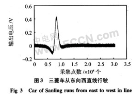 另外,通過比較三菱車不同方向行駛時的曲線可以看出:圖中曲線主峰偏向相反,是因為目標移動方向相反,這是由磁阻傳感器的特性決定的。