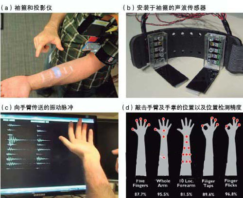 Harrison與美國(guó)微軟研究院(Microsoft Research)的研究人員開(kāi)發(fā)出了以手及手臂表面作為觸摸面板的技術(shù)“Skinput”。“我們?cè)囍屏艘粋€(gè)可實(shí)際運(yùn)行的系統(tǒng)”(Harrison)。只需用手指在手掌及手臂等的表面輕輕敲擊,即可操作游戲機(jī)、音樂(lè)播放器及手機(jī)等。