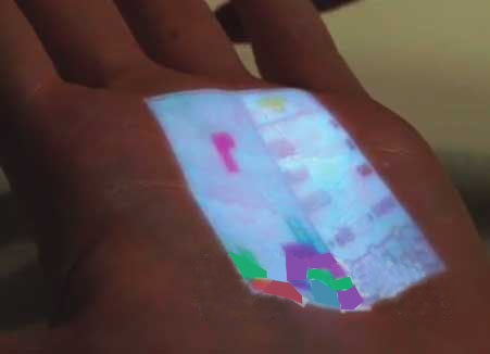 Skinput利用投影儀以手掌等代替手機(jī)界面這一點(diǎn)與美國(guó)麻省理工學(xué)院(MIT)開(kāi)發(fā)的“Sixth Sense”相似。不同的是,“利用Skinput時(shí)無(wú)需使用攝像機(jī),還無(wú)需圖像識(shí)別及顏色標(biāo)識(shí)等,處理起來(lái)比較容易”(Harrison)。
