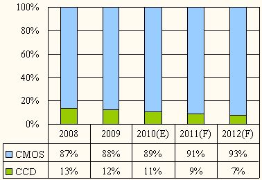 拓墣產(chǎn)業(yè)研究所(TRI)針對全球Image Sensor(影像傳感器)IC組件市場分析,2010年全球Image Sensor組件應用市場規(guī)模為7.1億美元,在經(jīng)過金融風暴的影響后仍持續(xù)呈現(xiàn)正成長趨勢。而影像傳感器市場占比猶以CMOS Sensor之比重極高,平均占比約在9成左右;分析制程技術發(fā)展趨勢來看,預期未來將會朝整合型傳感器(Multi-Sensors)的模塊化發(fā)展,縮減零組件體積空間及材料種類。