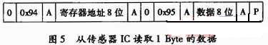 讀數據格式:圖5所示為讀1 Byte數據時的正確幀格式。