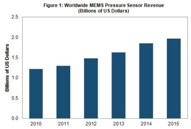 - 到2015年,MEMS壓力傳感器銷售額將達到19.7億美元