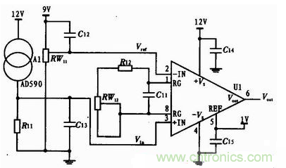圖2:AD590信號調理變換電路