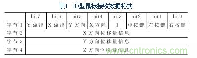 按照鼠標的PS/2協議規范,實際編程時先對鼠標發送0xff使其復位,默認采樣頻率為100次/秒,縮放比例1:1,數據報告禁止。使用0xea命令進入stream模式、使用0xe8,0x03命令設置解析度為8點/毫米。使用0xf4命令使能數據報告。配合AT89S51單片機的定時器功能,將其時間常數設置為0.1s,每次中斷時發送0xeb命令讀取位移數據信息,每發出一次,單片機接收到的位移數據包都包含有位移信息和按鍵動作信息。具體格式為表1所示。編譯時也只需提取X3的有效數據包即Y方向位移增量