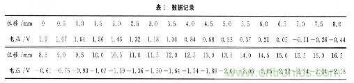 從圖7中PC機(jī)界面顯示位移一電壓坐標(biāo)圖,表1記錄的數(shù)據(jù)以及圖8在示波器上顯示的霍爾線性電路理想電壓一位移曲線圖相比較,可以發(fā)現(xiàn)由于傳感器實(shí)驗(yàn)臺受外界干擾等原因使得輸出信號輸出誤差在所難免,而且沒有電平轉(zhuǎn)換,使得VB繪圖中得到的數(shù)值存在負(fù)值;但是可以在圖中看到傳感器輸出的電壓值在正負(fù)之間有明顯的對稱性,與要求輸出的理想輸出信號波形相符合,證明本系統(tǒng)運(yùn)行良好,設(shè)計(jì)的非常成功。