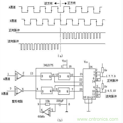 圖2:光電編碼器鑒相計數電路