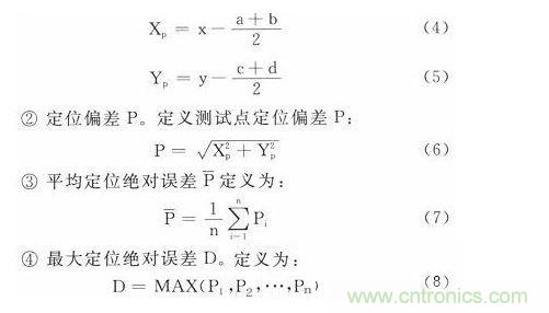 ①偏差Xp、Yp。假設(shè)在物理平臺上測試點的網(wǎng)格坐標取值范圍為X∈[a,b],Y∈[c,d](a、b、c、d為非負整數(shù),b-a=d-c=1,單位為cm)通過軟件求得的坐標為(x,y),定義偏差Xp、Yp: