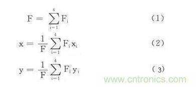 根據(jù)式(1)~(3),可計算出力F的位置,從而實現(xiàn)定位。