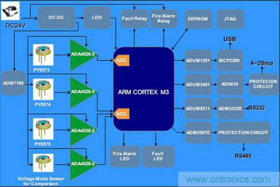 作為一個參考設(shè)計,這個方案的主控芯片選用了流行的ARM Cortex-M3架構(gòu),這樣能方便開發(fā)者將自己的算法移植進(jìn)行移植,給開發(fā)者帶來更大的靈活度。同時,參考方案中支持豐富的接口,如RS232、RS485,能夠滿足大多數(shù)應(yīng)用場景的需求。