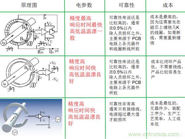注:閉環(huán)電流傳感器、開環(huán)電流傳感器、電動汽車電流傳感器對比圖