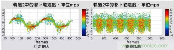 圖3:兩張圖顯示了行走的人和擺頭風扇隨時間推移的微多普勒信息