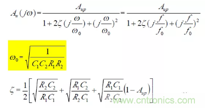 可見該低通濾波器特點是阻尼系數ζ 由電阻R1、R2,C1、C2 的比決定;而固有頻率ω0與R1、R2、C1、C2 具體數值有關,即ω0與ζ 獨立可調,互不影響。