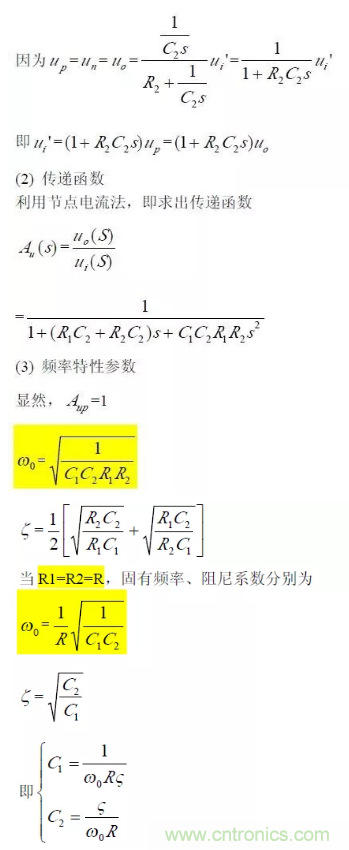 對于二階壓控低通濾波器來說,當通帶放大倍數Aup =1(單位增益)時,圖所示電路變為圖所示,其中RF=R1+R2。
