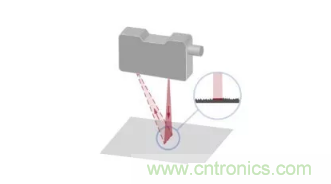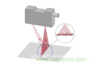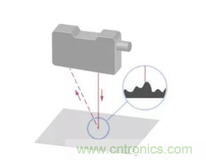 根據(jù)三角測量原理,通過測量反射光的入射角,可計算出傳感器到物體的距離。入射角隨距離而變化,因而激光點在接收器上的位置也相應(yīng)變化。